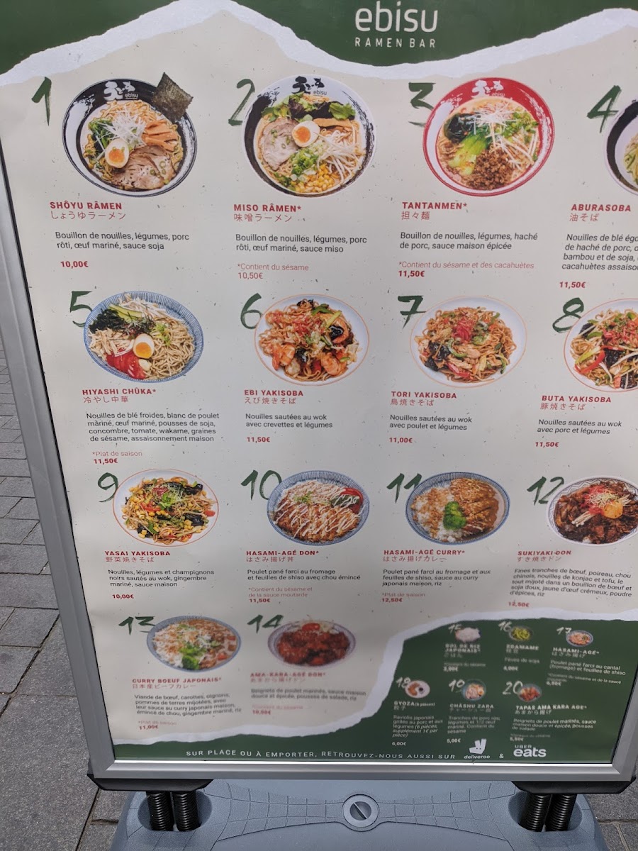 Very decent ramen! Just off the Capitole, ebisu offers a nice selection of ramen and other Japanese specialities. Nice alternative to the Fufu restaurant, a stone’s throw away. The ramen was hearty, portion big enough and the food came out fast as well. We’ll be back for sure.